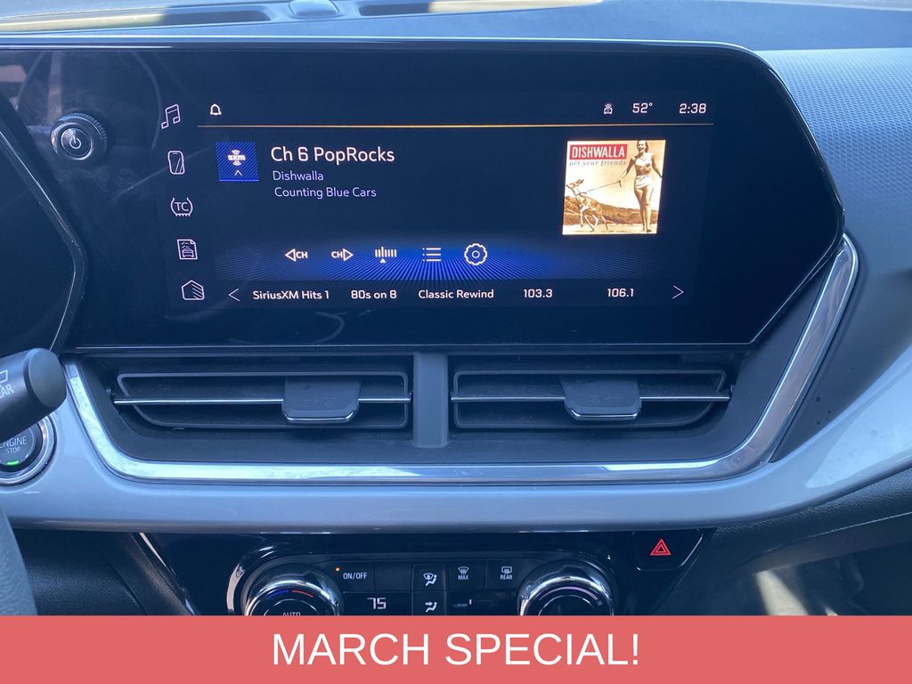 The interior of the Trax LT is designed with your comfort and convenience in mind. The 6-speaker audio system, Chevrolet Infotainment 3 system, and SiriusXM radio ensure you can enjoy your favorite music and entertainment on the go. The automatic temperature control and rear window defroster keep you comfortable in any weather, while the power windows and remote keyless entry add an extra layer of convenience.