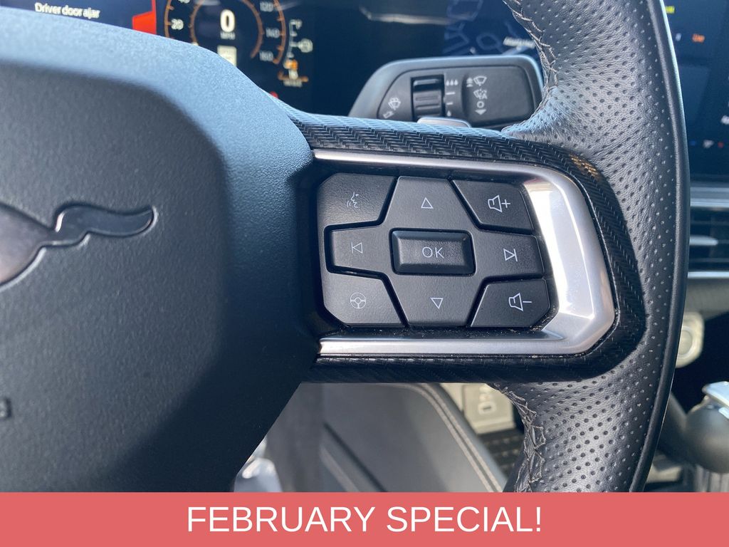 Step inside the Mustang GT Premium and you'll be surrounded by a cabin that exudes refinement and attention to detail. The leather-trimmed bucket seats with color accents provide exceptional comfort and support, while the Locking Center Console and Illuminated Door-Sill Scuff Plates add a touch of sophistication.